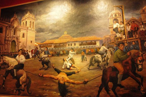 18 de mayo de 1781: José Gabriel Condorcanqui fue un caudillo indígena peruano que reclamaba ser descendiente directo de los últimos gobernantes incas del Perú, más precisamente de Túpac Amaru I. Por ser un indígena de origen noble recibió formación en el Colegio de Caciques del Cusco. Se desempeñó como arriero al sur del actual Perú, lo que le permitió mantener una buena estabilidad económica y también conocer a fondo las diversas realidades del Virreinato más preciado de Suramérica. El 4 de noviembre de 1780 Condorcanqui encabezó un movimiento armado contra el curso de las reformas borbónicas y la opresión que sufrían los pueblos nativos. Como muchas otras revoluciones americanas, Túpac Amaru II, nombre asumido por Condorcanqui en la sublevación, reclamó que su movimiento no se enfilaba contra el rey de España sino contra “el mal gobierno”, aunque con el avance del mismo terminó por radicalizarse.