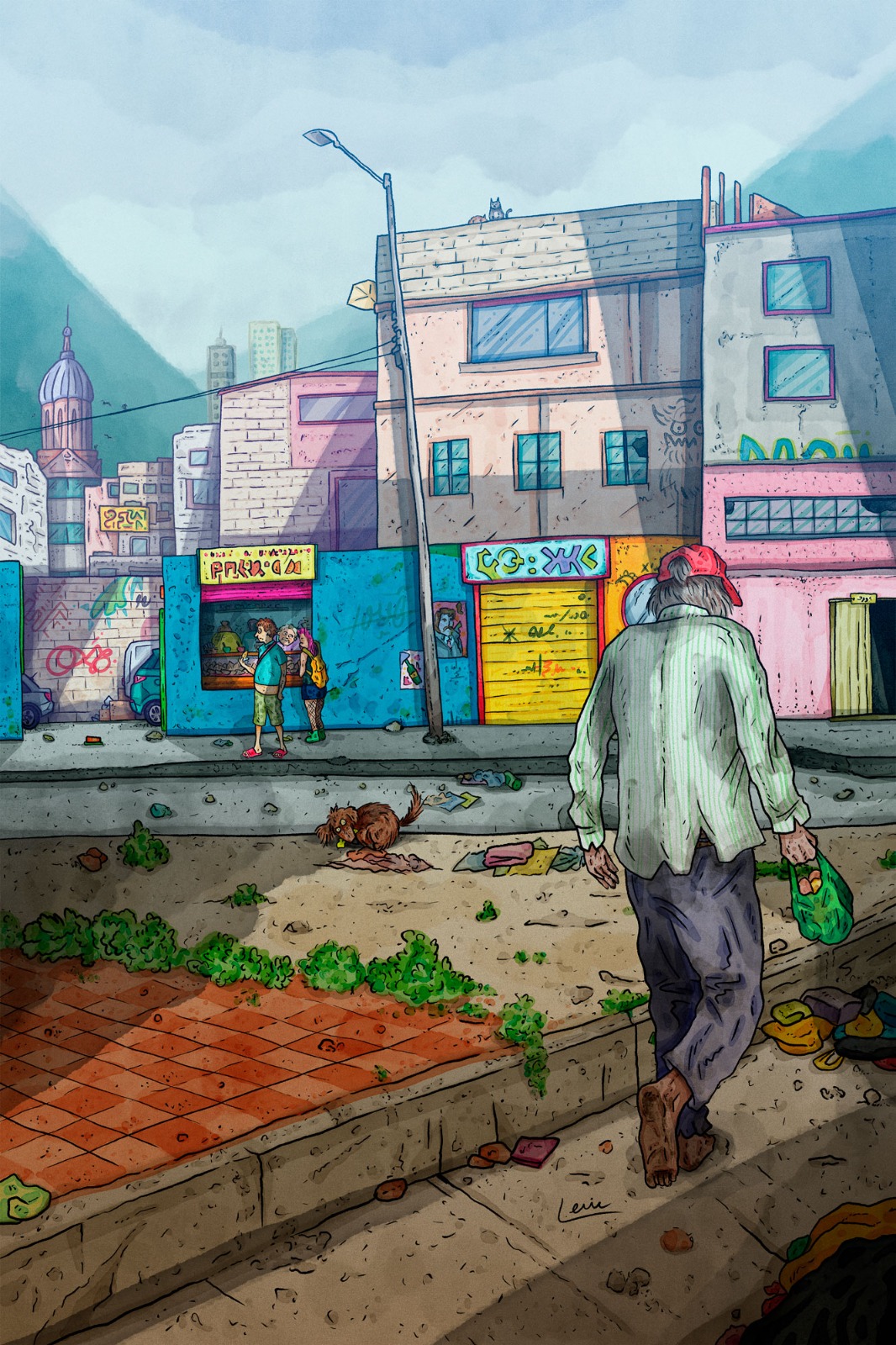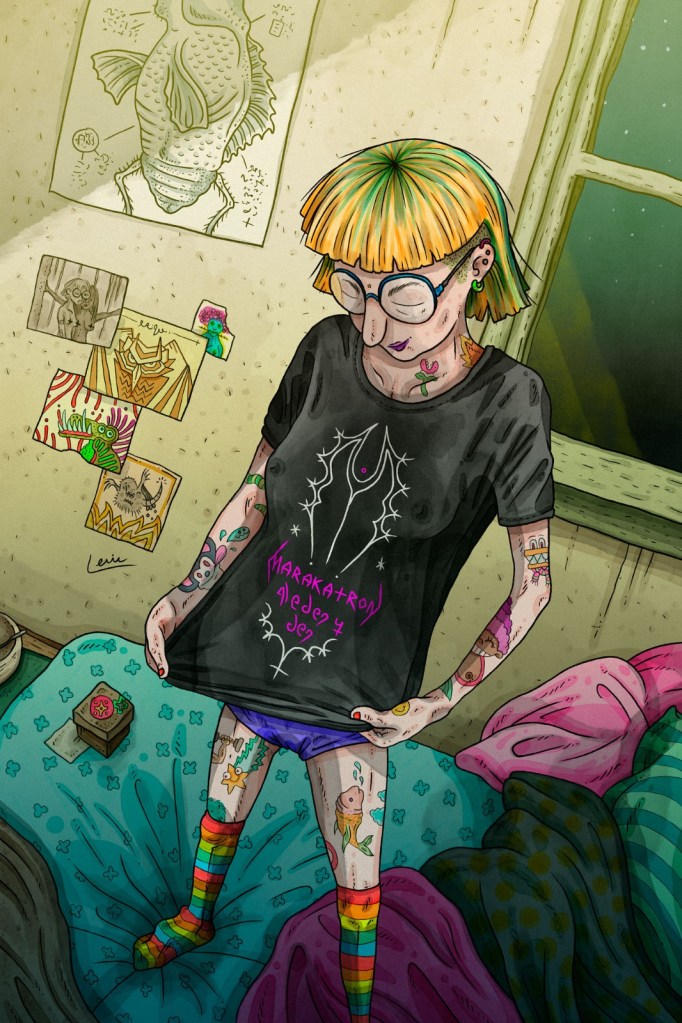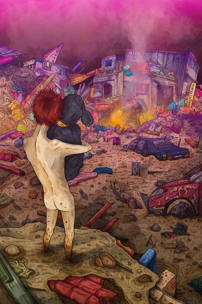 En esta novela ilustrada se cuenta, con intensidad y desgarro, la vida de lxs habitantes de una ciudad, en la que la violencia y la muerte se entretejen con el amor, la noche, la música y la calle. La complejidad de los personajes se va descubriendo a medida que se avanza en la lectura, el autor va desvelando los secretos de cada unx y la trama de relaciones entre ellxs; Lenin Ortega juega con los tiempos y en los diálogos, llenos de jergas deslocalizadas, se construye un territorio que se habita, en el desplazamiento.