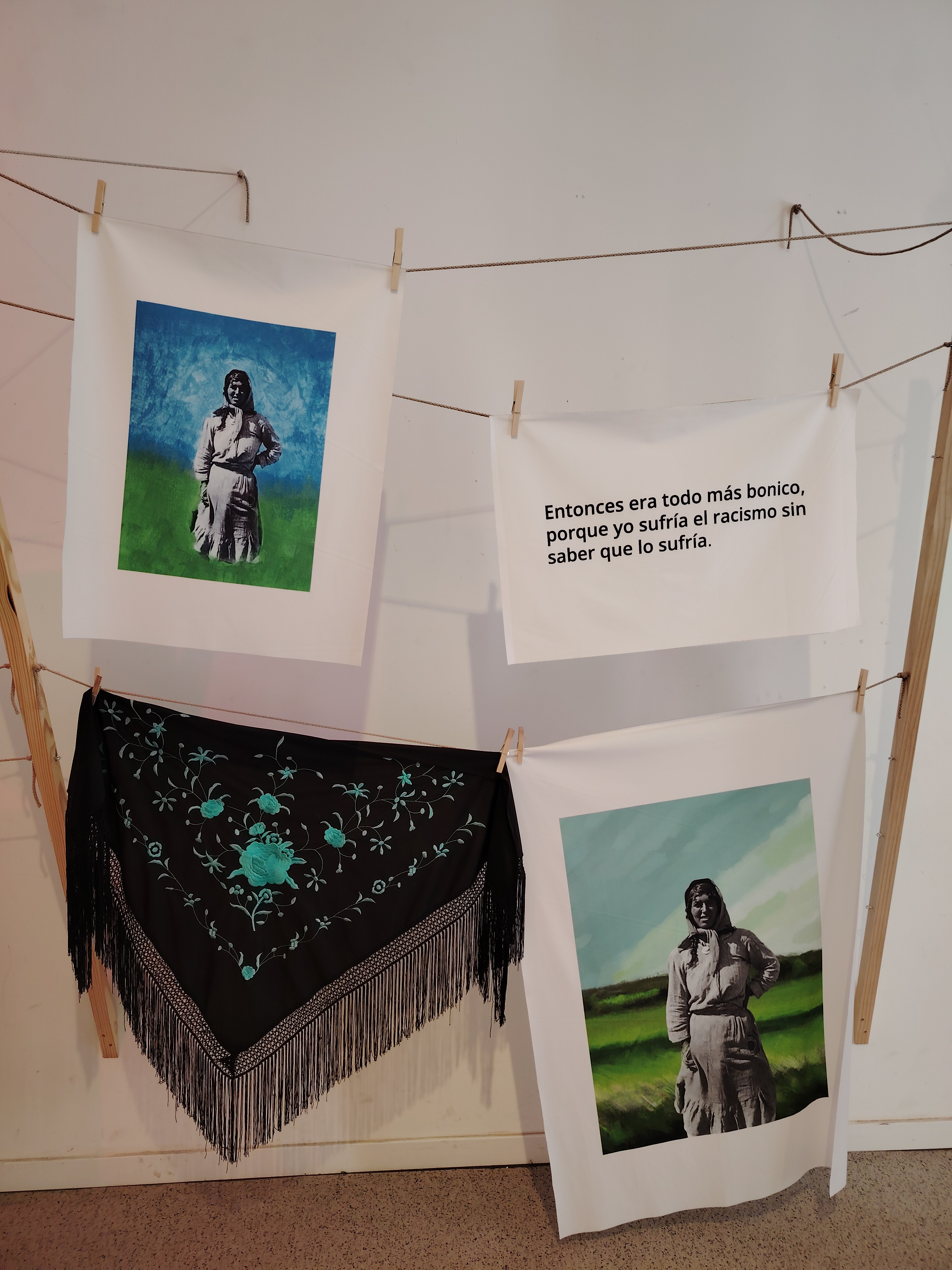 Y aquí estoy yo, desfacedora de entuertos, buscando la forma de devolverles el protagonismo a mis tías y a las tías de mis abuelas, interviniendo aquellas viejas fotografías que circulan por Internet a través del uso de los colores de la bandera gitana (rojo, verde y azul) para que vuelvan a ser sujetos y no meros objetos exóticos captadas por la mirada turbia de un extraño.