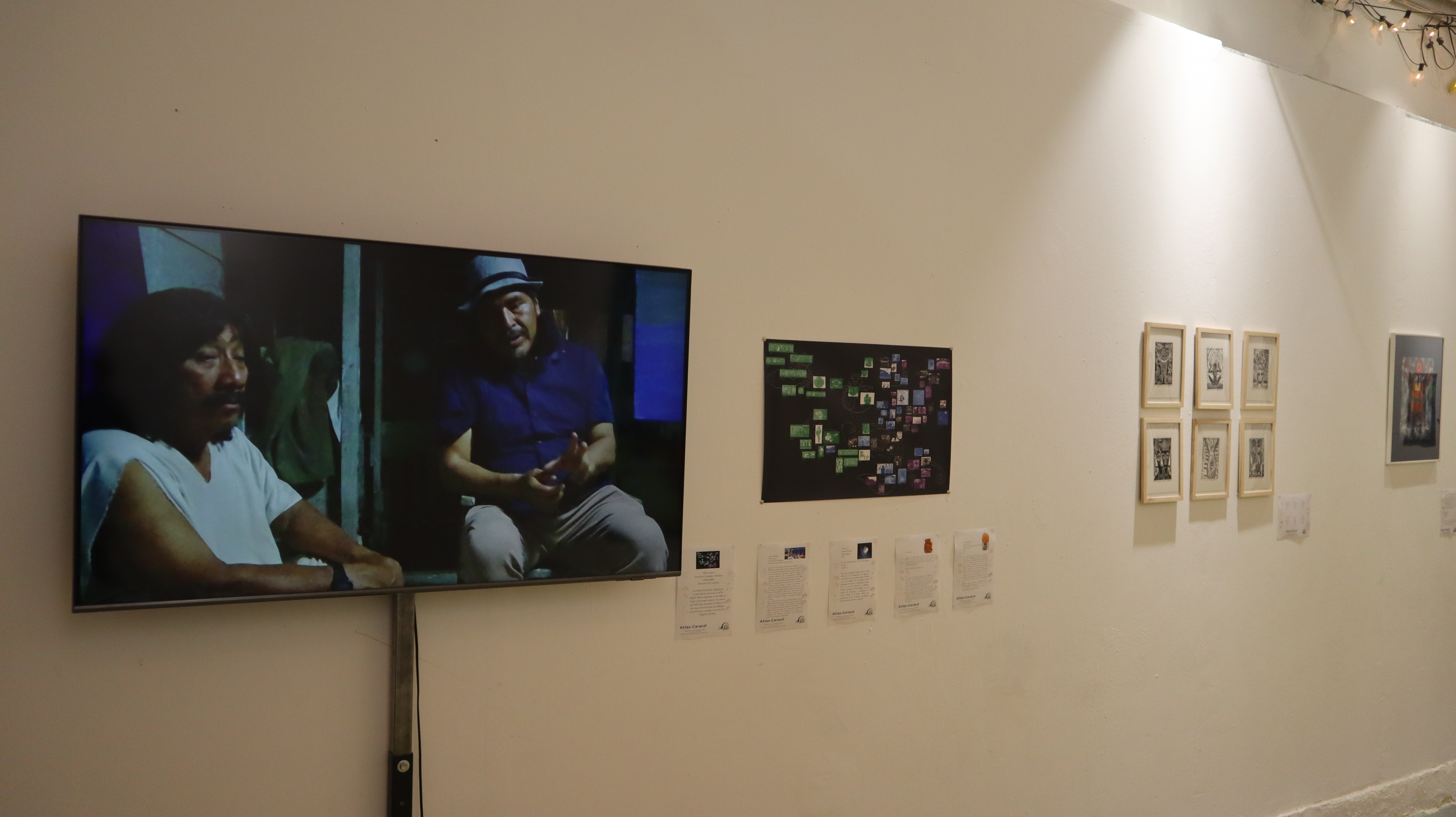 La exposición también incluye un video que narra la investigación de Francesca Cozzolino y Kristina Solomoukha sobre la iconografía zapatista que evoca los territorios zapatistas, que no son llamados ‘Caracoles’ de manera casual. Su imagen identifica un proceso político que propone ser «lento» (en contraposición a la idea de progreso capitalista), así como el caracol marino o concha, que se encuentra en el sistema simbólico del pensamiento maya-zoque, refiriéndose al tiempo no lineal, al flujo del movimiento y a la vida.»