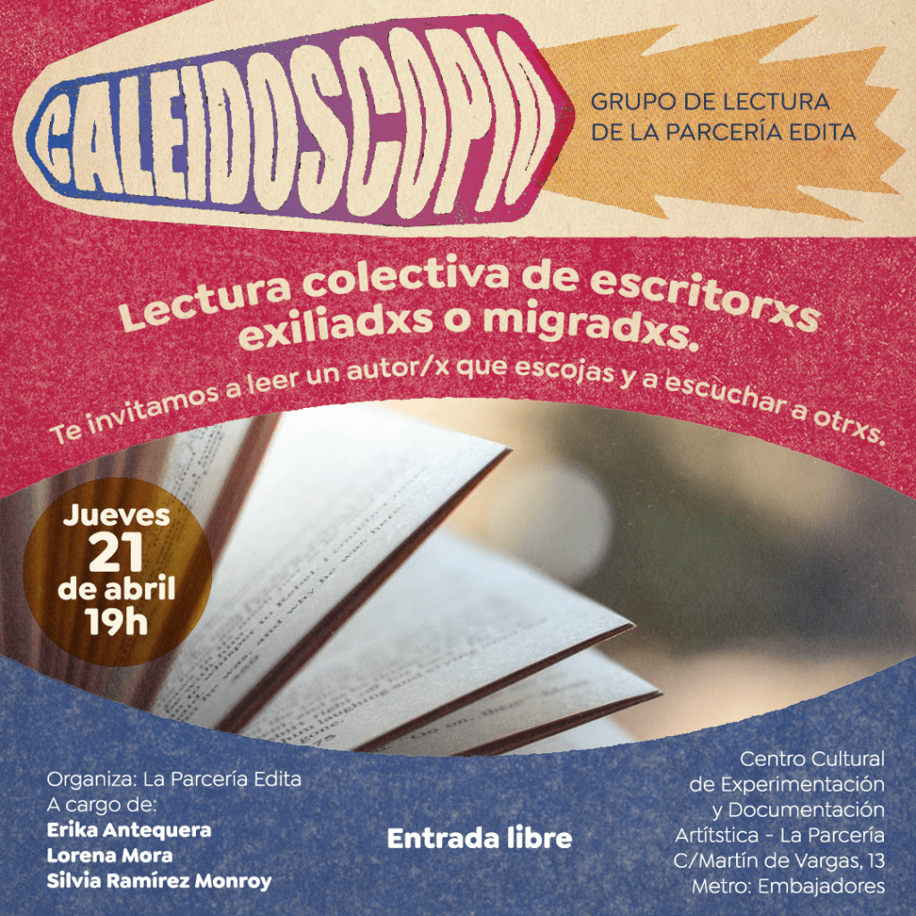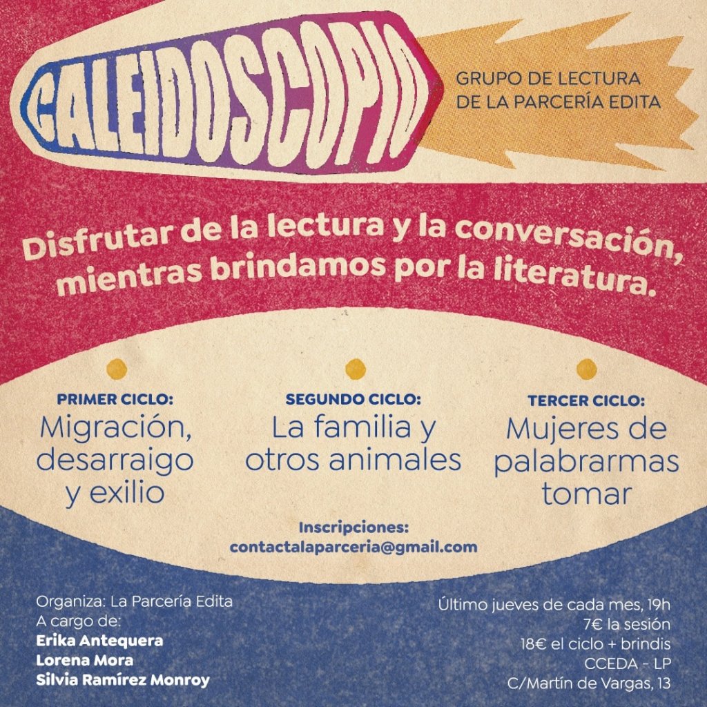 En “Caleidoscopio. Grupo de lectura de La Parcería Edita” vamos a explorar textos que nos invitan a la reflexión y al diálogo sobre temas que nos interpelan individual y colectivamente; también aquellos que hablan de geografías diversas reales y metafóricas para aproximarnos a otros mundos. A través de nuevas voces y clásicos literarios queremos abrir caminos para intercambiar ideas y compartir impresiones en un espacio de participación, integración y aprendizaje a través de la lectura.