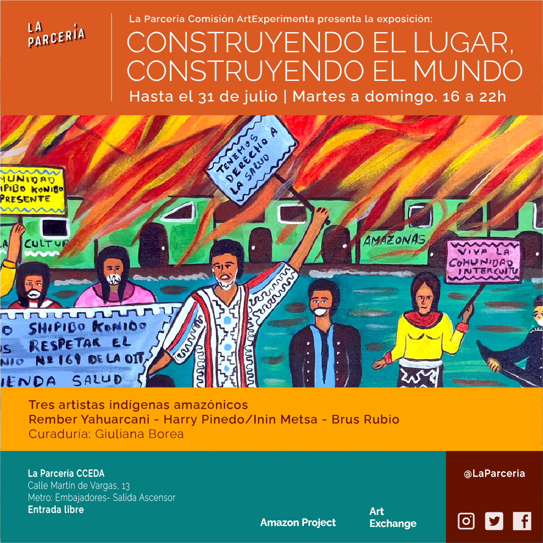 «Construyendo el lugar, construyendo el mundo» es parte del Proyecto Amazonart, acreedor de una beca Marie Skłodowska-Curie de la Unión Europea y realizado en la Universidad de Essex. La muestra cuenta con la colaboración de Art Exchange y ha recibido el apoyo de la Embajada de Perú en Londres.