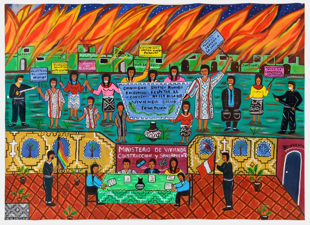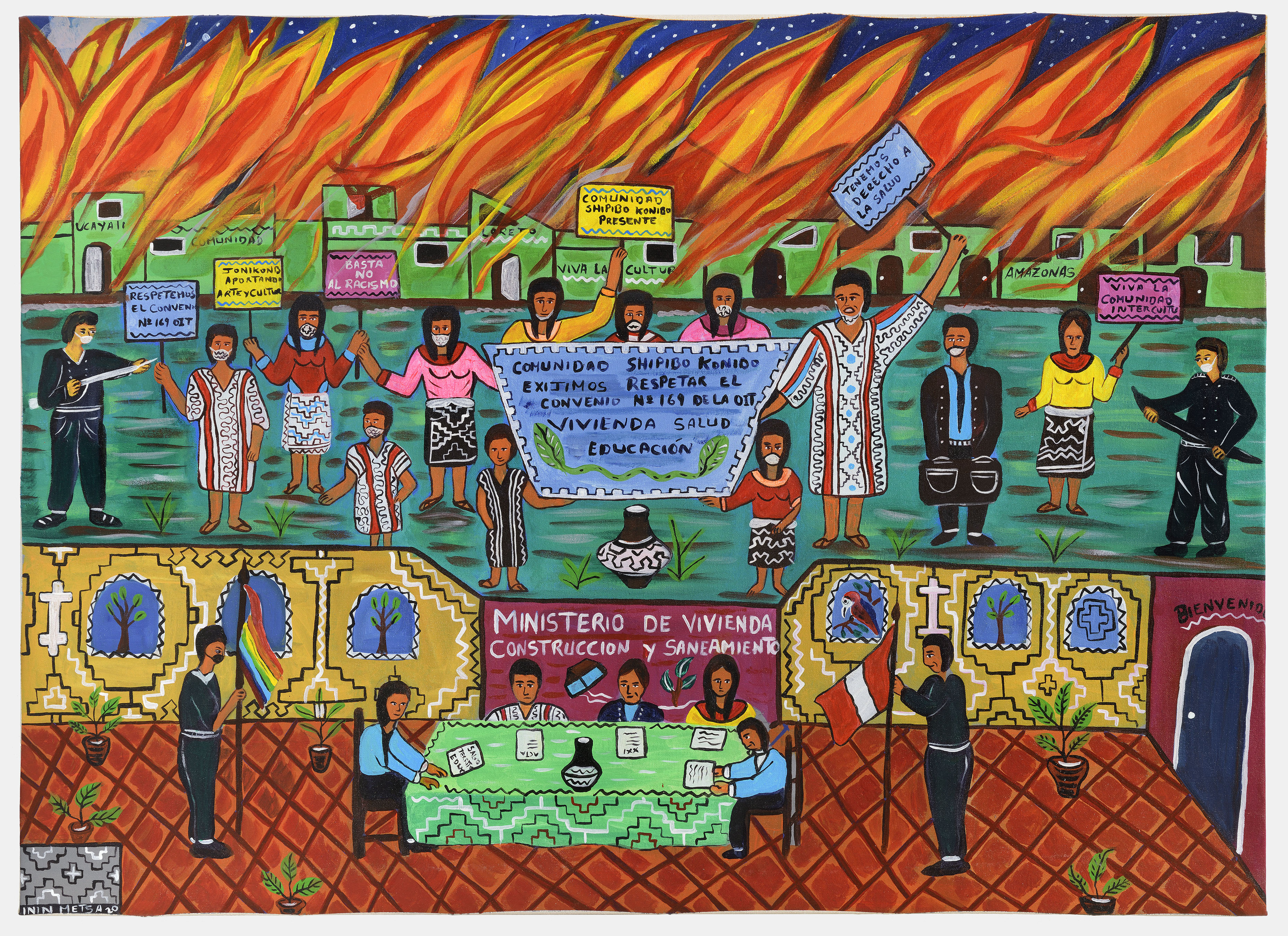 La exposición reúne la obra de artistas contemporáneos indígenas de la Amazonia peruana: Rember Yahuarcani, Harry Pinedo / Inin Metsa y Brus Rubio. La muestra ha sido comisariada por Giuliana Borea, y se presenta por primera vez en España.