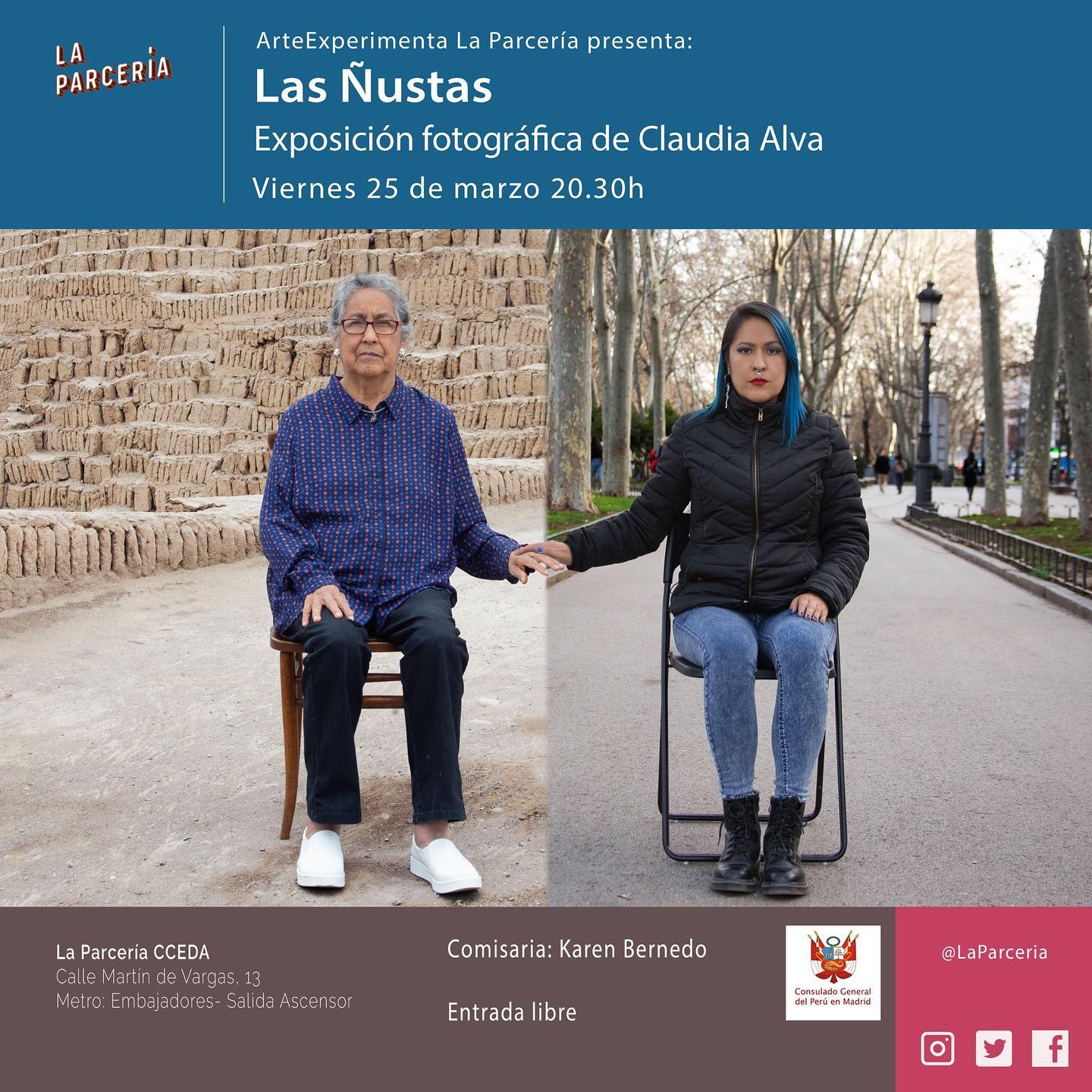 Las dos Fridas, es la primera e instintiva pulsión de la fotógrafa para retomar la imagen, esta vez, para interrogar su propia historia e identidad como migrante en España, es así que el proyecto Las Ñustas se constituye en una serie de fotografías que recoge las complejidades del proceso migratorio a partir de trazar genealogías familiares y experiencias diversas de mujeres peruanas en Madrid.