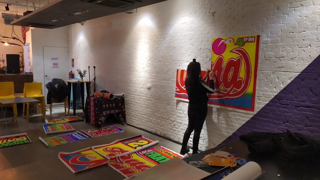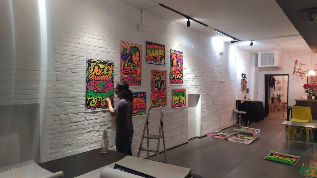 A principios de los años 80 nace en Perú una nueva música llamada chicha. Es la música de los emigrantes, de los que han huido del campo, de la guerra, de la miseria, pero también, de los que han traído con ellos alegría, valentía y esperanza. En paralelo con el sonido chicha, mezcla de melodías vernáculas e instrumentos occidentales, se desarrolla un grafismo lleno de colores y tipografías lúdicas que aparecen primero en las portadas de los discos, luego en carteles de conciertos y fiestas.