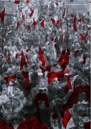 Se usan imágenes que traducen el sentido de la sublevación social, buscando avivar la llama, empujar, cargar de energía la imaginación política. Son intervenciones y montajes sobre fotografías de archivo, unas con autoría y otras extraídas del espectro fantasmal de las redes, luego digitalizadas e impresas en offset, con el fin de incrementar su difusión por espacios diversos, enfatizando su capacidad para irrumpir en la esfera pública y desestabilizar las percepciones hegemónicas sobre nuestra vida política contemporánea.