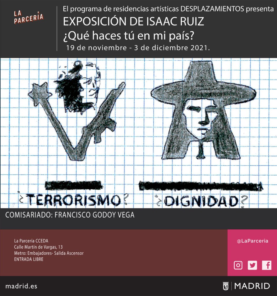 Nada más llegar a Madrid, el artista peruano Isaac Ruiz fue increpado por un hombre blanco español con la pregunta que da título a esta exposición, marcando los límites raciales de la no pertenencia a España, un territorio originario y reproductor de la supremacía blanca moderno-colonial. Isaac no es la primera ni la última persona racializada que se ha visto confrontada a este tipo de preguntas o afirmaciones de violencia racista: llevamos cinco siglos siendo inferiorizades por el reino de España y los españoles blancos tanto en la metrópolis como en las colonias.