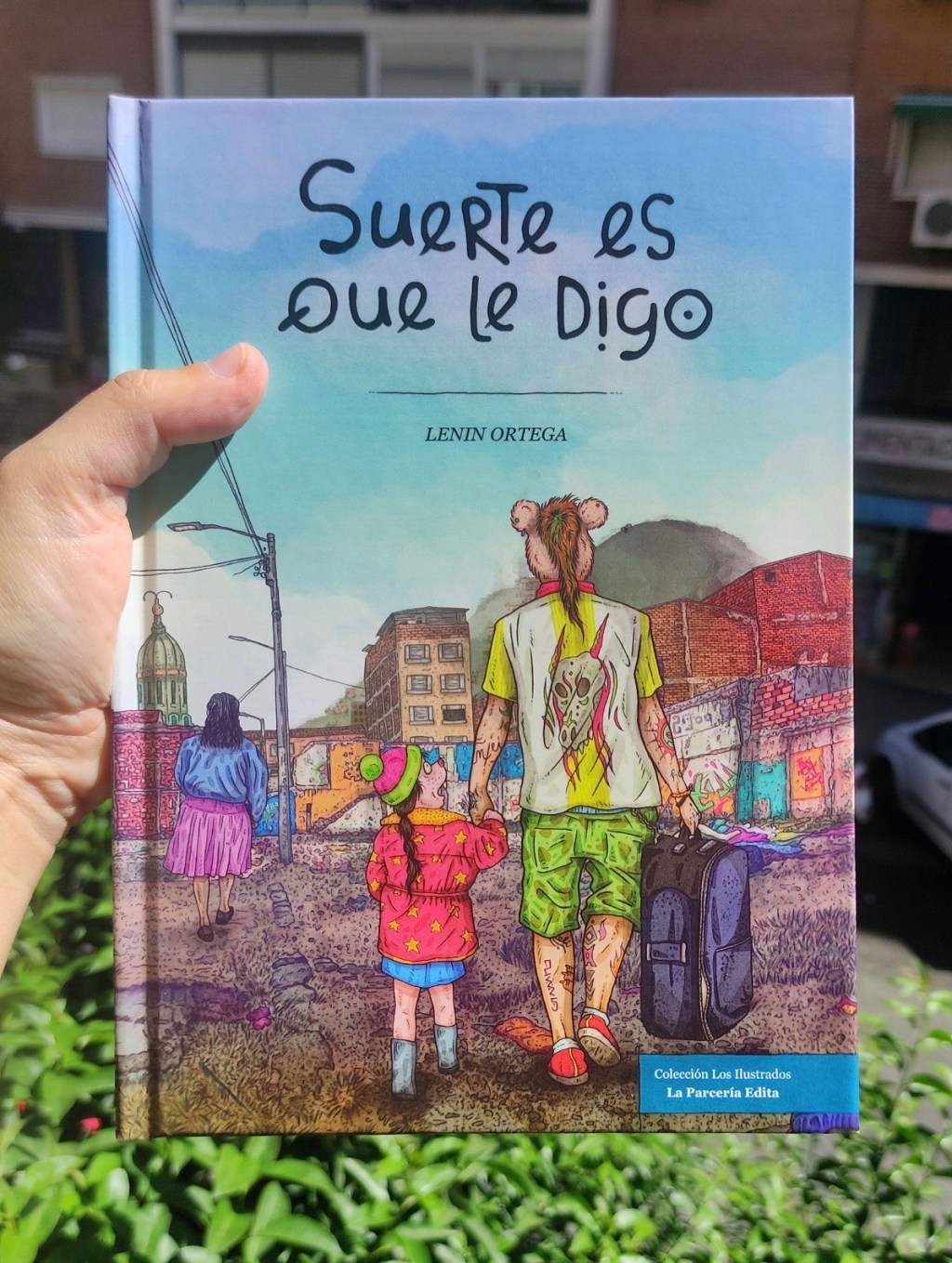«Suerte es que le digo» es una novela ilustrada en la que se cuenta, con intensidad y desgarro, la vida de lxs habitantes de una ciudad, en la que la violencia y la muerte se entretejen con el amor, la noche, la música y la calle. La complejidad de los personajes se va descubriendo a medida que se avanza en la lectura, el autor va desvelando los secretos de cada unx y la trama de relaciones entre ellxs; Lenin Ortega juega con los tiempos y en los diálogos, llenos de jergas deslocalizadas, se construye un territorio que se habita, en el desplazamiento.